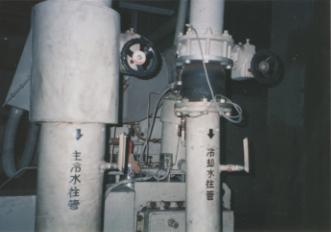 The electron-wave transmitting electrode lamps are fixed 30 cm above the equipment.One large-sized unit installed for 1400kW gas absorption type water cooling/heating machine