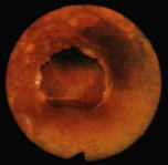 Survey 2-5 is in front of a second valve. Tubercles (bimetallic corrosion) are formed at the pipe end, resulting in the deposition of rust particles on the inner surface (Photo 7).